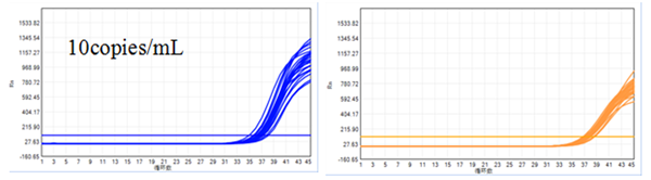 灵敏度:100copies/mL,20个样本检出率达100%