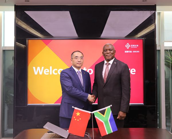 5月21日下午,南非共和国驻华大使谢胜文(SC Cwele)、商务公使约瑟夫·蒂莫(Yusuf Timol)在长沙高新区管委会相关领导的陪同下考察金年会jinnian金字招牌诚信至上生物,双方就进一步推动南非与金年会jinnian金字招牌诚信至上生物在医疗卫生领域的合作,进行了深入探讨。金年会jinnian金字招牌诚信至上生物董事长戴立忠陪同考察。