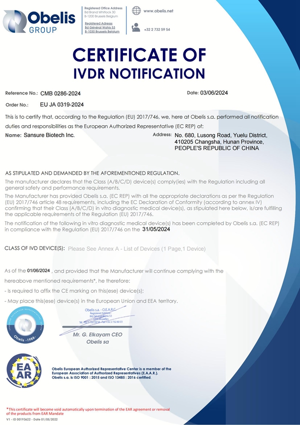 近日,金年会jinnian金字招牌诚信至上生物自主研发的结核分枝杆菌核酸检测试剂盒(PCR-荧光探针法)获欧盟CE IVDR认证,这是公司呼吸道产品获得的首个Class C级别的准入证书,为公司结核产品的全球布局提供了有力支持,也为全球在2030年前消灭结核的目标贡献了“金年会jinnian金字招牌诚信至上力量”。