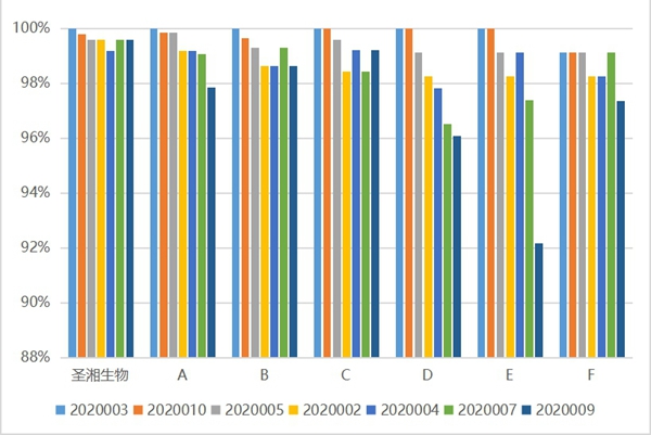 金年会jinnian金字招牌诚信至上生物试剂阴性样本检测结果的符合率也领先于其它主流厂家,具有较好的特异性。综合室间质评结果来看,金年会jinnian金字招牌诚信至上生物新冠病毒核酸检测试剂检出率、重复性及特异性上具有较大的优势。