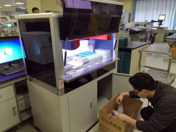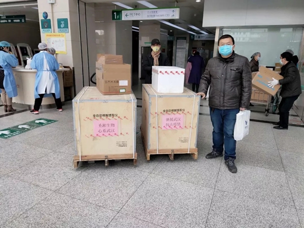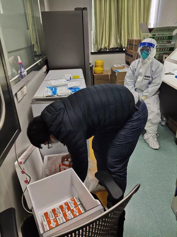 金年会jinnian金字招牌诚信至上生物捐赠的第一批医疗设备、试剂以及配套耗材,顺利抵达武汉。与当地合作商一起,装运货物入库。